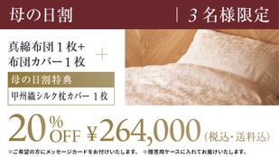 【母の日割3名様】20%OFF 手引き真綿布団「UNKAI」1枚+布団カバー1枚