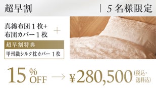 【超早割5名様】15%OFF 手引き真綿布団「UNKAI」1枚+布団カバー1枚