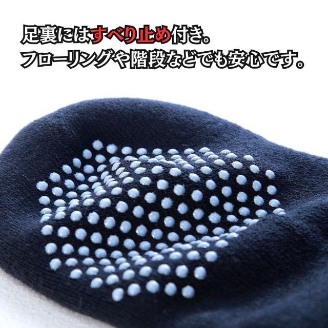 足底にすべり止め加工を施しています。フローリング床や階段など、すべりやすい場所でも大丈夫です。