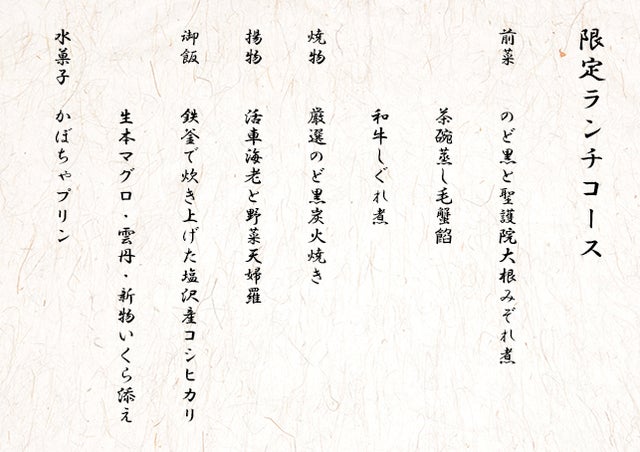 さらに、ディナーより手軽にのどぐろを堪能できる7000円のランチコースもご用意。