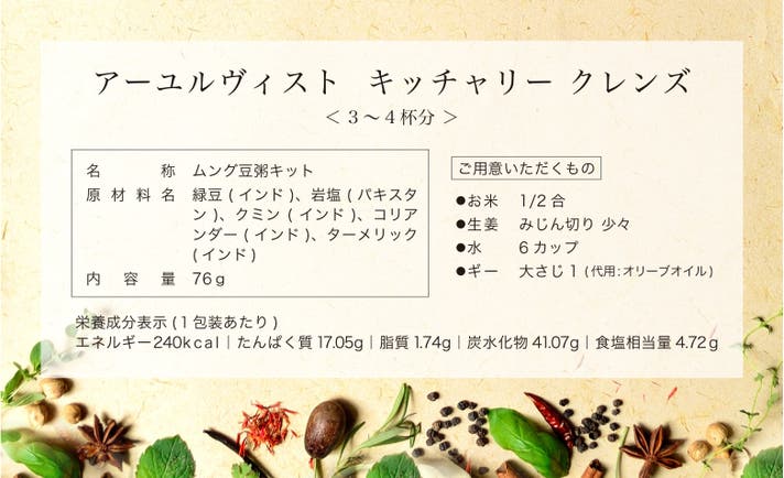 アーユルヴェーダ発想のキッチャリークレンズとクレンジングのセット