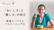 A. ホクホク食感に、カレーのような香り。まろやかで優しくおなかを温めてくれます。辛くないからお子様にも!