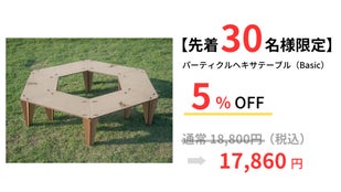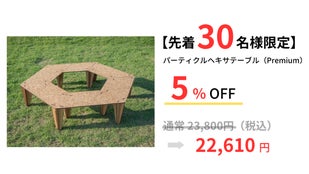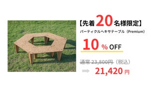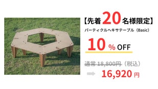 キャンプやBBQ用品を開発・提供しているブランド「KitchenCamp -キッチンキャンプ-」(株式会社キッチンボード)から、パーティクルボードで作られたヘキサゴン型のテーブルが登場しました。