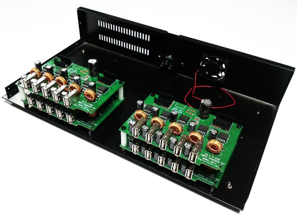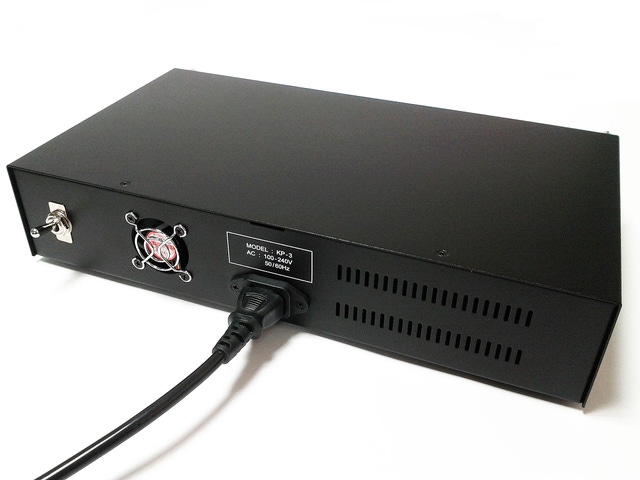 出力部が5ポートずつ分離されておりますので不具合が発生した場合でも残りの出力部は使用できるようになっております。メイン電源が正常に点灯しますと動作LEDは常時点灯します。同時に背面の冷却ファンも常時動作します。