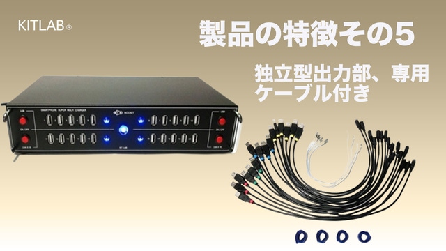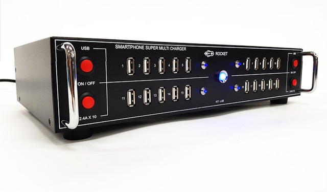 最近は多くの家庭はもちろんお店でもかなりの台数のモバイル機器を使用しているためその充電時の同時充電が難しくなっております。キットラップの大容量充電機は高出力の複数機器の同時高速充電でもリスクを少なく充電ができるように設計段階から厳しく製造された高出力充電装置です。一般家庭でも商業施設、公共施設などでも便利にお使い頂けます。モバイル機器が不可欠な今の時代より効率よく常に満充電の状態を維持し皆様のリモートワーク、店舗運営、施設管理などの業務に役立つことを目標で今回のプロジェクトを立ち上げました。