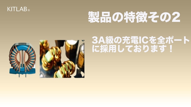 出力部それぞれ3Aの大電流用ICを採用。高速充電時1.7A以上の充電を必要とする高速充電対応モバイル機器などに仕様通りの十分な電流を供給します。