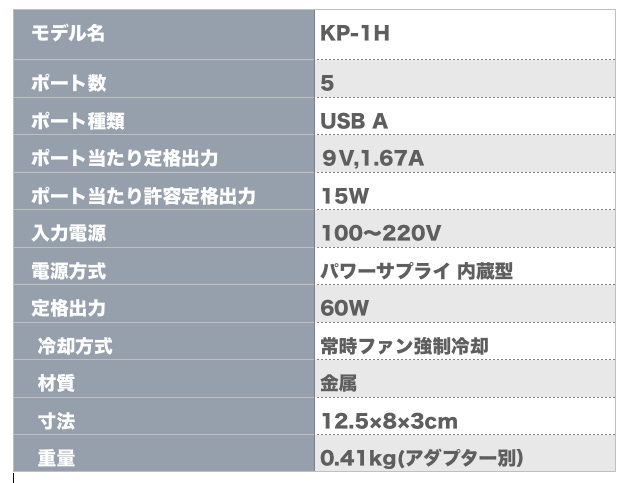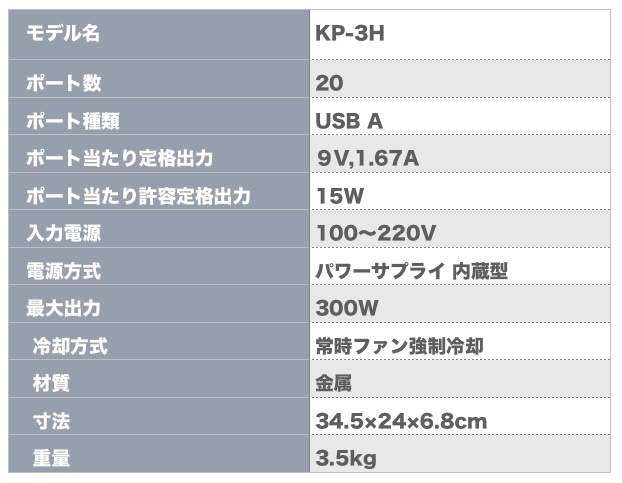 - 20台のスマート機器を高速で充電!※許容範囲マックス出力60A(300ワット)の高容量出力