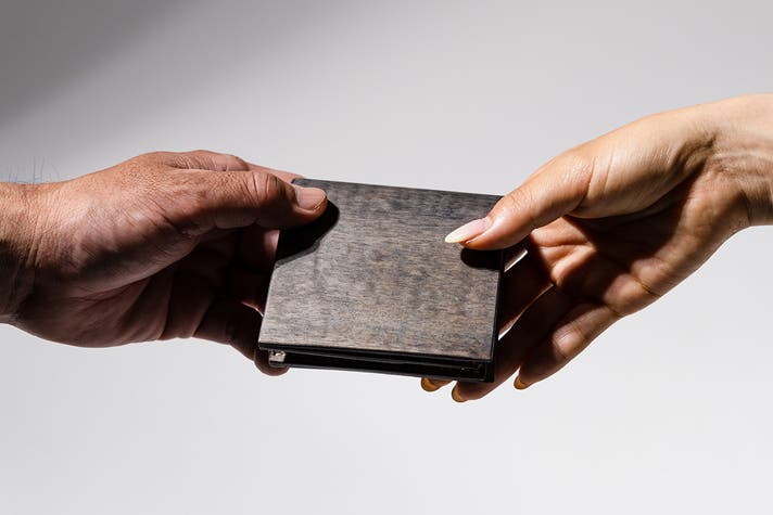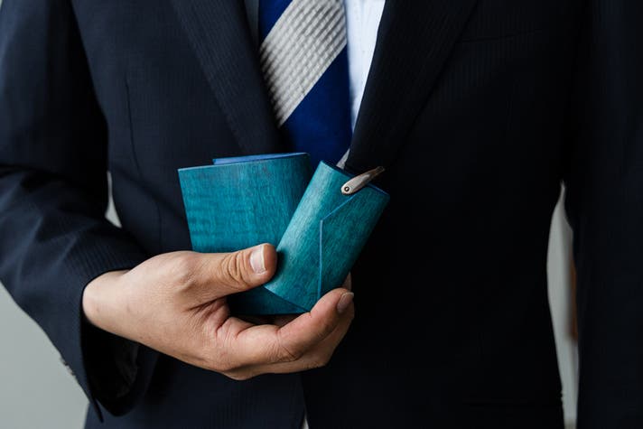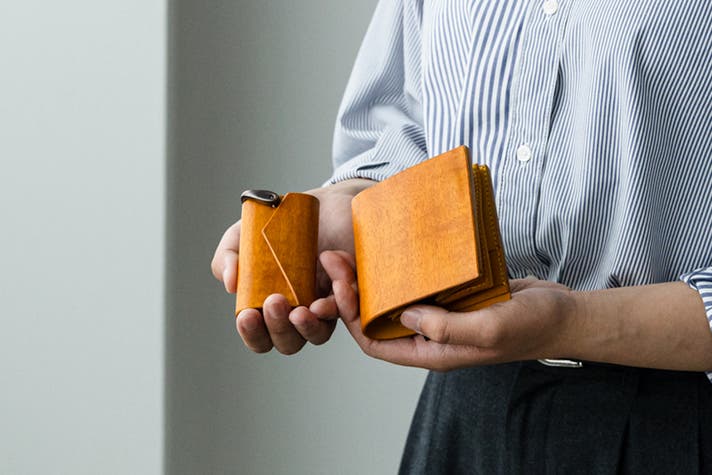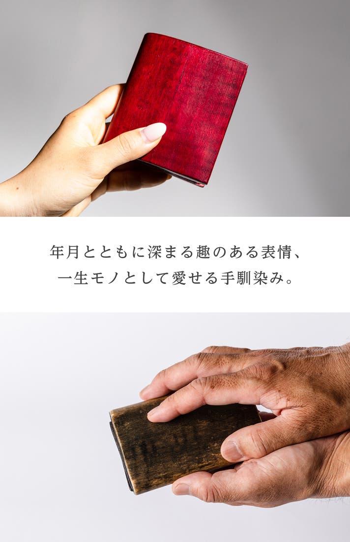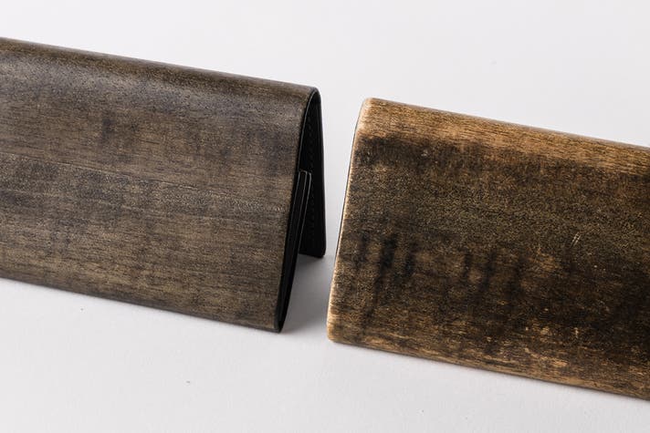 - 木と革の性質を併せ持つ新素材「木の革」。エイジングを楽しめて10年後も美しい一生モノの財布