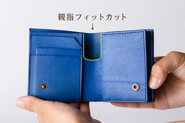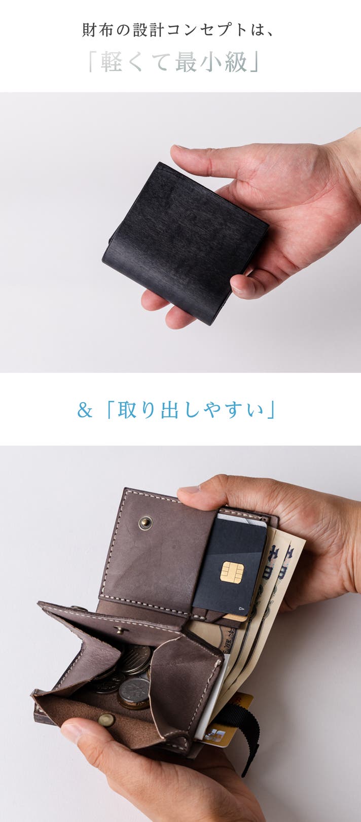 小さい財布は申し訳程度になることが多い小銭入れスペースを、膨らみにくく取り出しやすいボックス型で仕上げました。