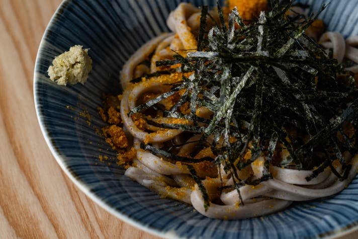 卵黄をトッピングしてお召し上がりいただきますが、お好みでトリュフをトッピングするオプションも。