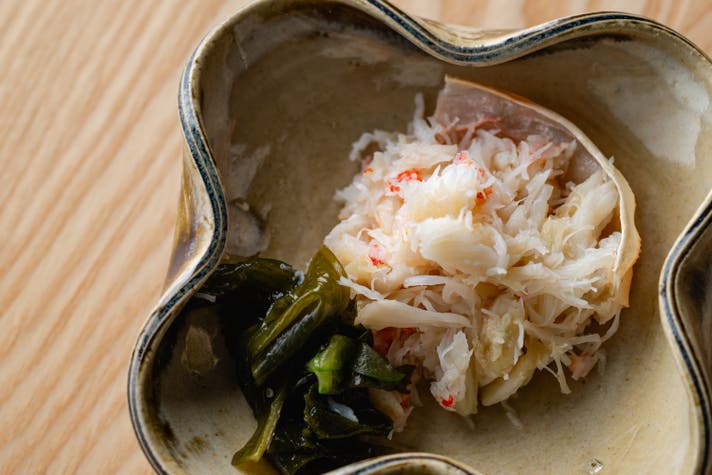 前菜は、紅ズワイガニの酢の物和え。