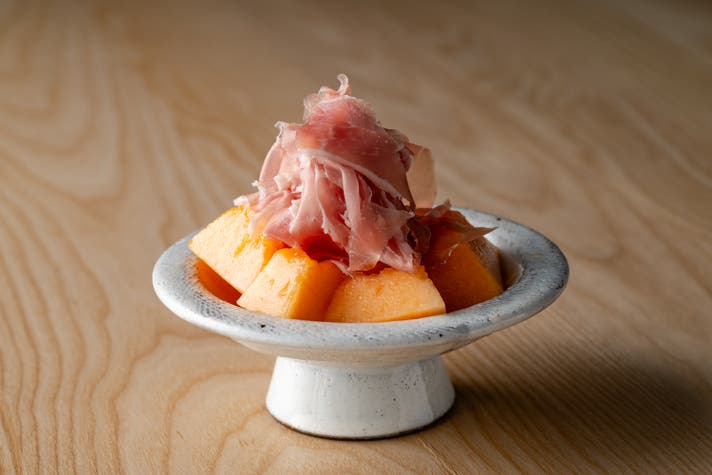 メロンの甘味とプロシュートの塩味が最高の相性を奏でます。