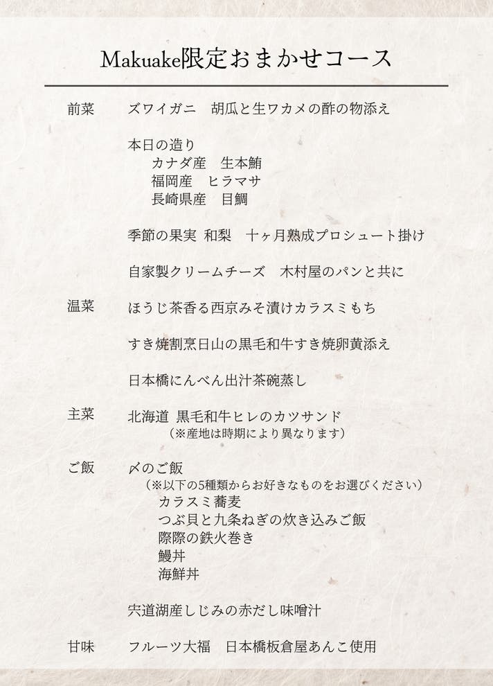 ・Makuake限定おまかせコース