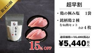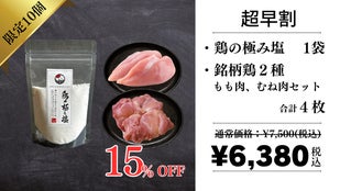 6【Makuake割】鶏の極み塩×銘柄鶏むね肉セット