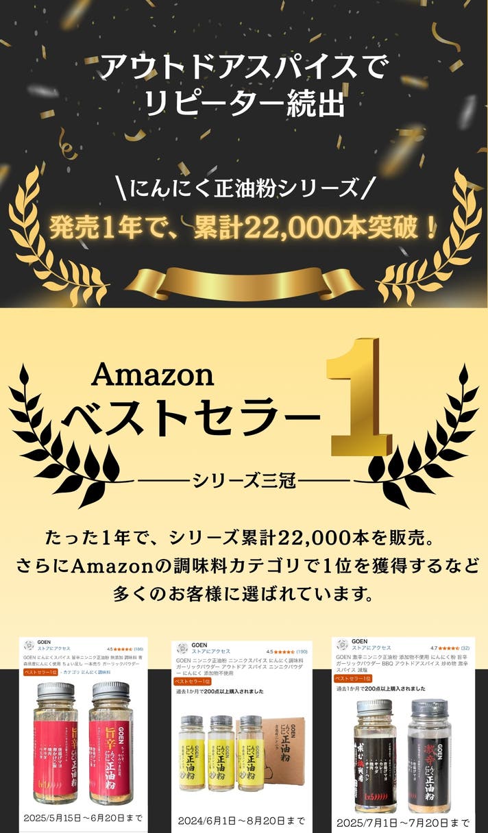 - 【シリーズ累計20,000本突破!】にんにく正油粉から期間限定の味がついに登場!