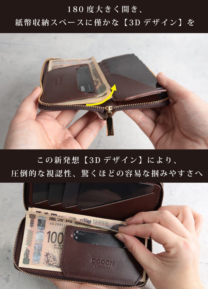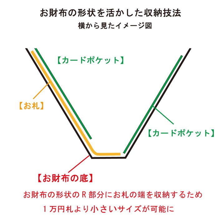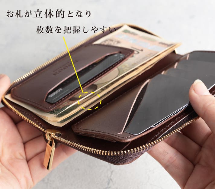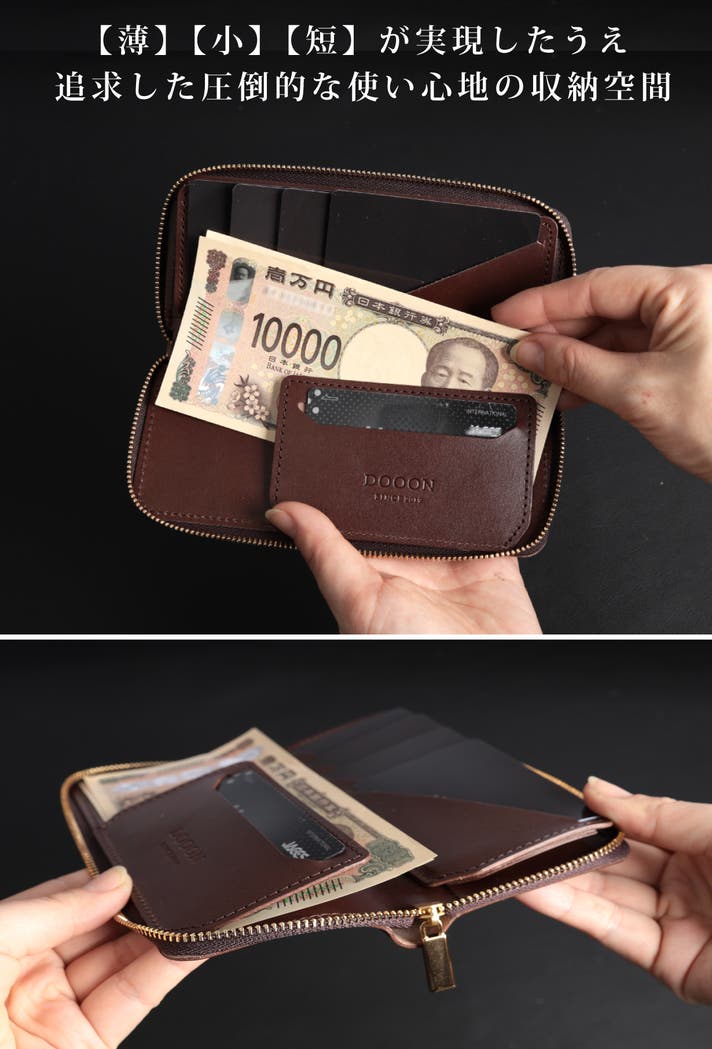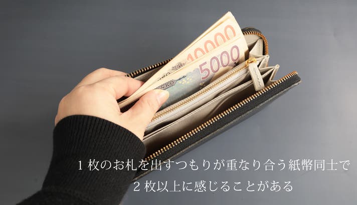 - もうレジで迷わない。お札を滑り込ませる独自の3D収納技法で極小サイズとスムーズな出し入れを両立
