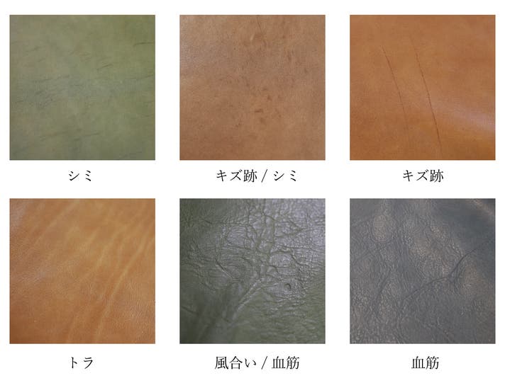 当工房ではキズ/各風合いを避けての裁断は極力しておりません。