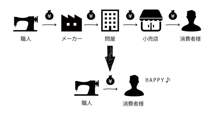 小売店、卸問屋を通さない事で、中間マージンを抑え