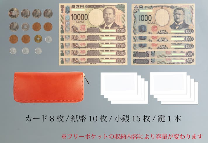 ※紙幣/小銭/カードなど、収納する割合バランスにより収納量は多少前後します。