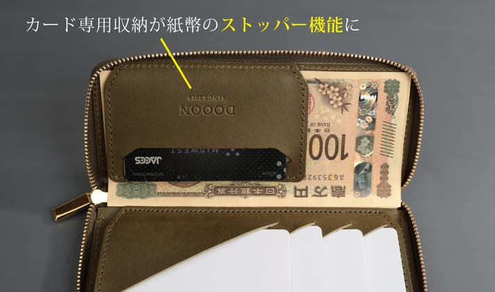 紙幣はしっかり収まる、狙いすました絶妙のサイズ空間へと設計