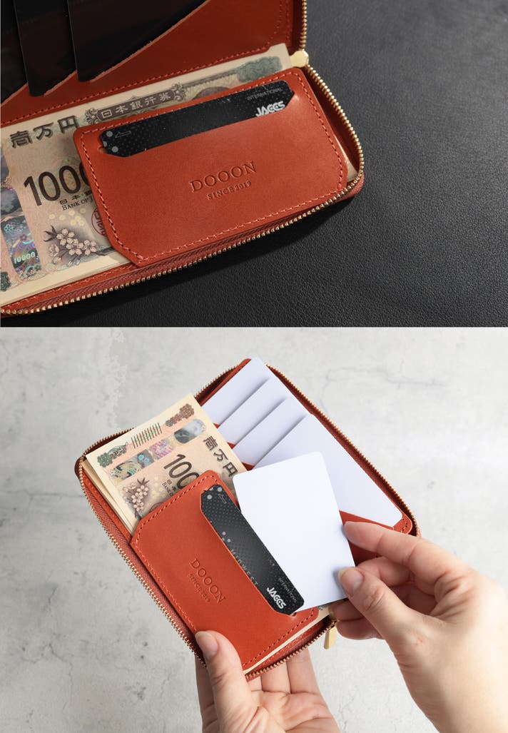 極小に仕上げた長財布であっても、収納バリエーションは当然、超長財布級