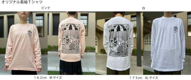 オリジナル長袖Tシャツ(サイズ:M.L.XL カラー: サーモンピンク、白2色からお選びください。)