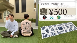 これからの季節、インナーにも使える長袖Tシャツと、きゃさグループのロゴを模様にした手ぬぐいです。また、お店でご利用いただけるお得なクーポンもお付けします。