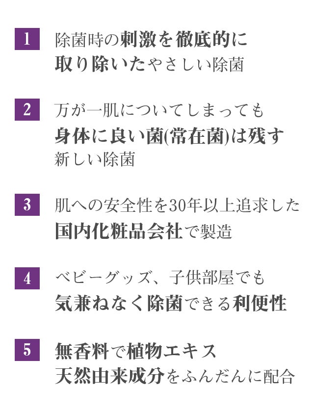 - 「除菌の悩みを持つすべてのかた」のために徹底的に考え抜いた「やさしさがギュっと詰まった除菌剤」