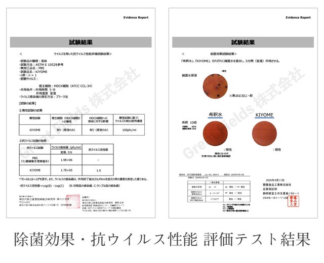 第三者の検査機関により、高い除菌力があることが実証されています。