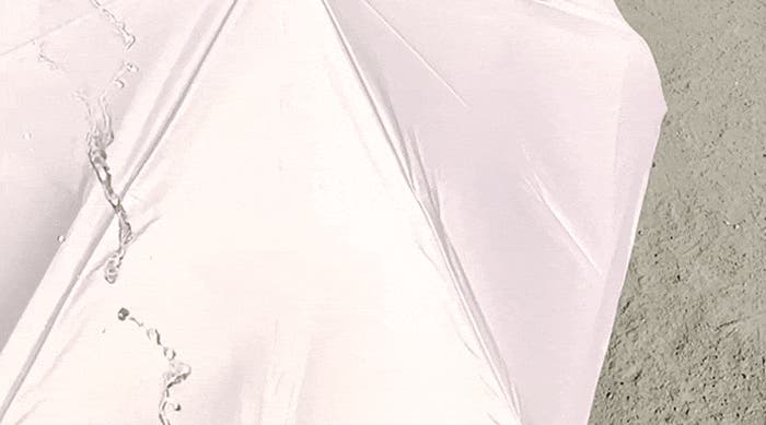 A : 傘の生地裏側の部分に薄いプラスチックのような樹脂をつけている状態のため、基本的には外れたりしない限り耐久性は続きます。