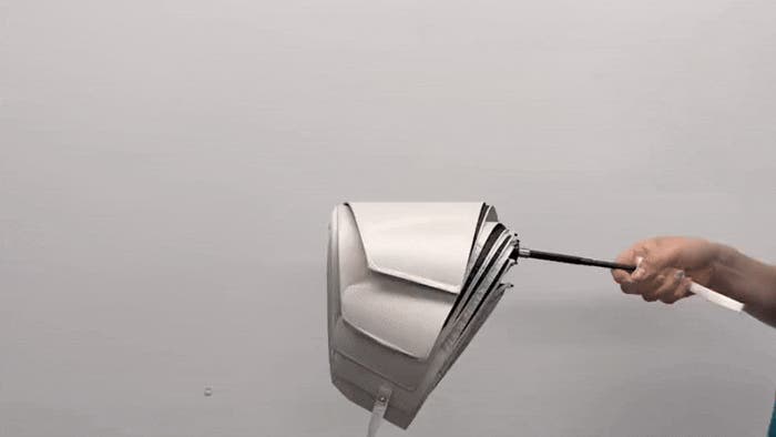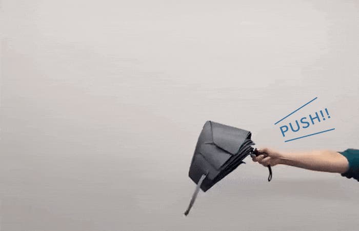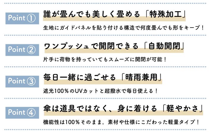 特殊加工のガイドパネルにより、傘を閉じた後に傘生地が一瞬で自然と綺麗に整います!