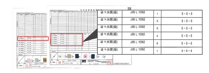 さらに、「撥水度4~5級」のポリエステル繊維生地は、雨も驚くほど弾きます!