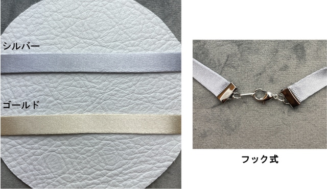 ご希望者には猫ちゃんのサイズに合わせたオリジナルのリボンもオーダーでお付けします。(ゴールド・シルバーの2色)
