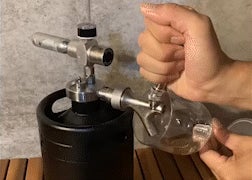 ✓ KK beer server は、お家の中でも、お外でも使えるビールサーバーです。体積は2L程度・重さは2kg弱で、持ち運びが楽々です。