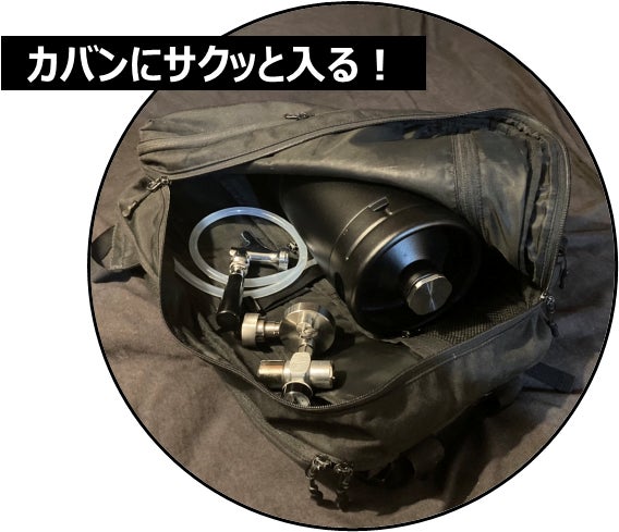 - 炭酸ガスが超小型!そのため全体が小型で持ち運びやすい!