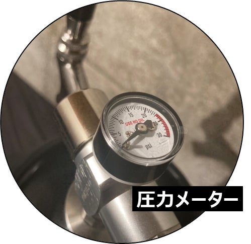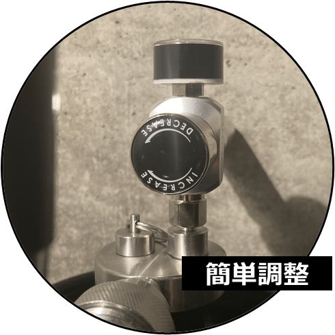 ▶CO2の量の調整は簡単!捻るだけ。圧力メーターの確認も忘れずに
