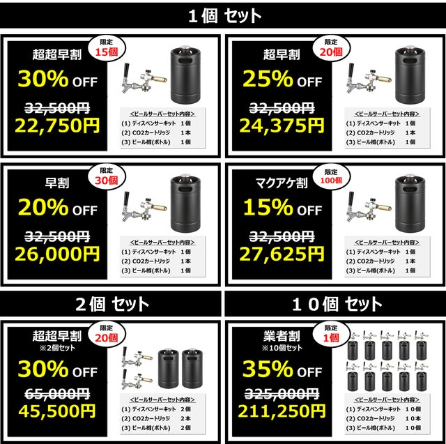 <ビールサーバーセット内容>
