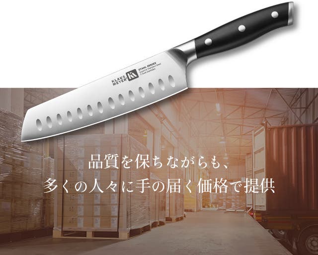 クラウス・マイヤーは、大量生産の他ブランドと異なり、職人が一つ一つ手作業で仕上げる高品質な製品です。各ナイフは鍛造から仕上げ、検査まで全て手作業で行われ、高い硬度を持つため製造には高度な技術が必要とされています。