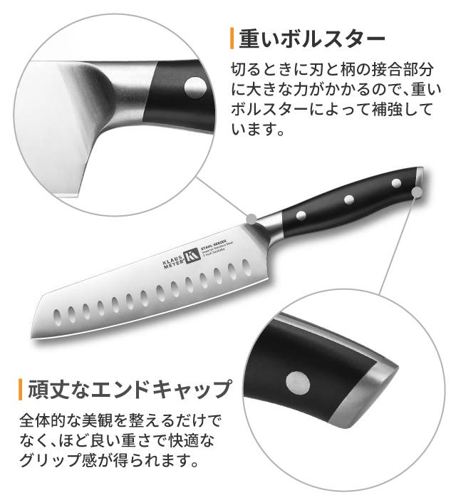 クラウス・マイヤーの包丁は、ドイツの伝統的なデザインをベースにしつつ、現代的な機能性を持たせています。スタールシリーズは、特にバランスが良く、握りやすい形状が特徴です。