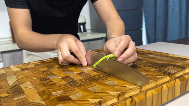 また、尖った一般的な包丁よりも安全性を重視したデザインになっており、怪我のリスクを軽減。見た目にも個性的で、機能性とデザインを両立したこの包丁は、毎日の料理が楽しくなる一本です。