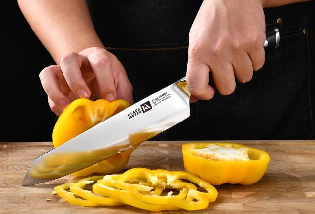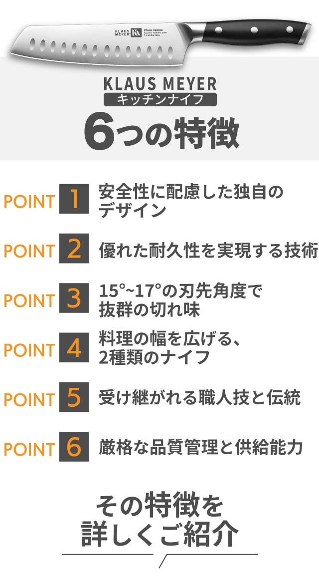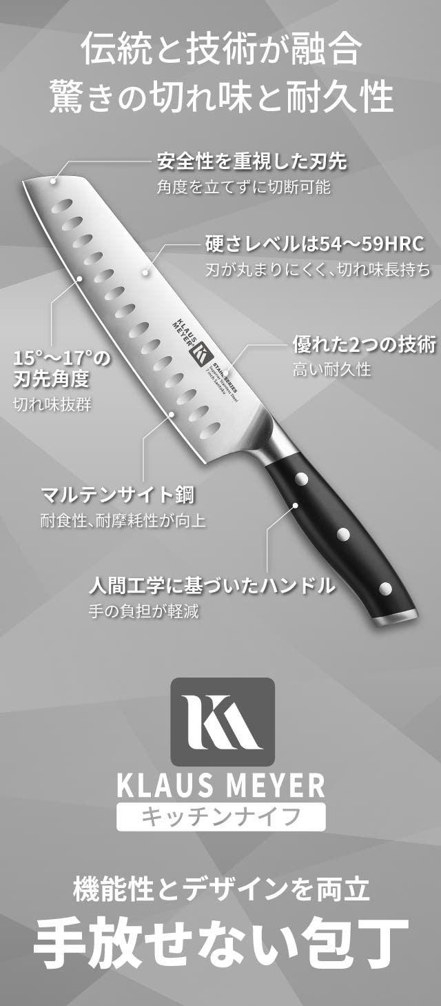 クラウス・マイヤーは、素材選びから最終的な刃の研磨まで、一貫して高い品質を追求しています。特に使用されている鋼材(X50CrMoV15)は、硬度と耐久性に優れており、油焼入れ処理を施すことで長期間にわたって高い切れ味を維持します。伝統的なドイツの技術を活かしながら、現代的なデザインと機能性を取り入れたクラウス・マイヤーの包丁は、料理の楽しみをさらに引き立てる一品です。