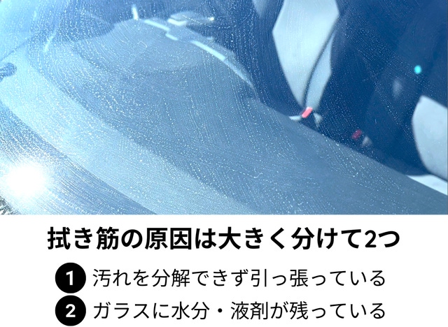 ②ガラスに水分・液剤が残っている
