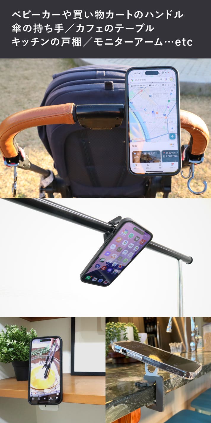 - 【スマホをどこでもピタッと固定】挟むだけで強力ホールド。マグネット不要でどこでも設置できる