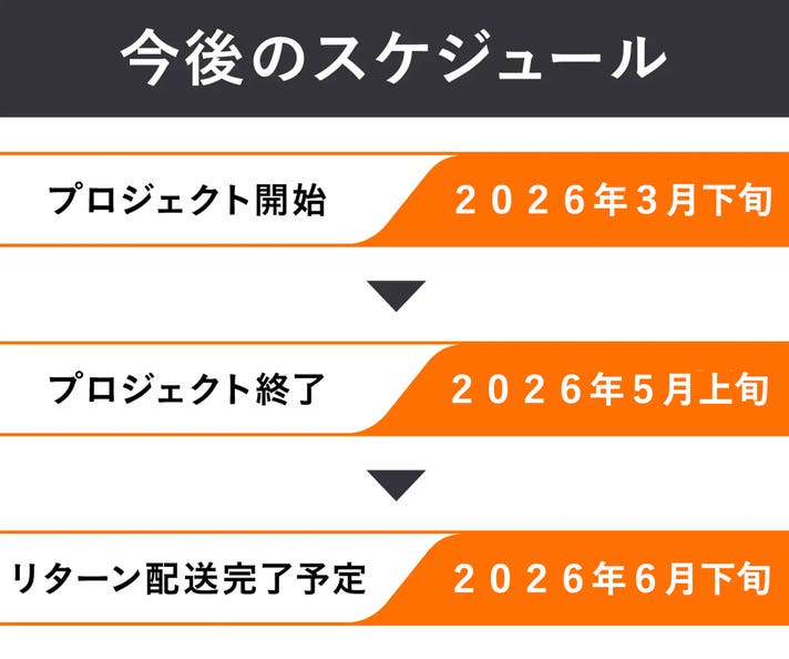 このプロジェクトはAll in型です。目標金額の達成に関わらず、プロジェクト終了日の2026年05月08日までに支払いを完了した時点で購入が成立します。