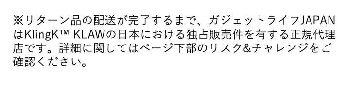 プロジェクトに関する情報 ・プロジェクトの属性:輸入商品 ・代理店によるサポート:初期不良のみ交換対応(到着から14日以内) ・プロジェクト実行者(国):日本 ・製品者(国):アメリカ ・製造者(国):中国 ※並行輸入品が発生する可能性があります。正規以外での個人輸入等は、完全に防ぐことができない場合がございます旨、予めご了承のほどお願いいたします。 ※リターン品の配送が完了するまで、ガジェットライフJAPANはKlingK KLAWの日本における独占販売権を有する正規代理店です。並行輸入品が発生する可能性がございますが、並行輸入品には正規代理店による製品サポートを受けることができません。 また、正規代理店を通じて購入することで、日本国内での流通に必要な各種認証の取得や、関税の適切な処理が担保されます。 ※一部国内に類似商品が出回っている場合がございます。弊社では他社の類似品に関してのお問い合わせには対応できませんのでご了承ください。 ※使用感などに関しては、感じ方に個人差が予想される製品でございます。そのため、使用感等に関する返品・返金はお受けいたしかねます。 ※初期不良以外に関する返品・返金はお受けいたしかねます。 ※デザイン・カラー・素材などの仕様が一部変更になる可能性がございます。 ※モニター環境によって、画像の色が実物と異なって見える場合がございます。 ※応援購入の数が想定を上回った場合、製造工程上の都合等により出荷時期が遅れる場合がございます。 ※皆様から想定を上回る応援購入を頂き、量産体制を更に充実させることができた場合、一般販売価格が予定価格を下回る可能性がございます。 ※本プロジェクトはアンコールプロジェクト(*)の実施可能性があります。 (*)アンコールプロジェクトとは、実施したプロジェクトが好評だった場合において、当該プロジェクトが終了後に再び数週間から数ヶ月程度実施するプロジェクトを言います。 アンコールプロジェクト実施の場合、本プロジェクトとアンコールプロジェクトで同じ配送月を設定する可能性もございますが、本プロジェクトのサポーターを優先して配送いたします。 ※本文中に記載させていただいたスケジュールは、あくまでプロジェクト公開時点の予定です。応援購入の性質上、配送遅延のおそれがございます。原則として、配送遅延に伴う応援購入のキャンセルはできませんが、リターン配送予定月から3ヵ月を超えた場合には、希望者に限りキャンセルにて対応させていただきます。 【商品等の不具合による返品・交換】 原則として、サポーター都合によるキャンセル・返金は承っておりません。 (サポーター都合のキャンセル不可の例:サイズが合わない、誤注文、長期不在) ◾️対応条件: 商品の初期不良、またはお届けした商品がご注文内容と異なる場合、到着後14日以内にプロジェクトページの「実行者にメッセージ」よりご連絡ください。状況を確認の上、返金対応、または良品との交換対応をさせていただきます。 ◾️返金額: リターン金額(税込)の全額 ◾️返品送料/再送料: 実行者負担 【返品・交換をお受けできない商品】 ・サポーターの責任により破損、汚損が生じた商品 ・商品のタグ、付属品、パッケージ(箱、袋など)を紛失、破棄された商品 ・事前にご連絡をいただいていない商品 ・商品到着後、15日以上経過した商品 【交換をお受けできないケース】 ・限定品や同一商品の在庫がない場合など、代替品をご用意できない商品 以上の注意点につきましてあらかじめご理解とご了承いただいた上で応援購入くださいますよう、よろしくお願い申し上げます。 最後に、本製品を手に取った皆様に喜んでもらえるよう、チームメンバー一同心を込めて対応していきますので、 応援よろしくお願い致します。