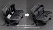 また、リュックをデスクなどに置いたまま、少しだけ移動してカフェなどで作業するときに便利な専用ノートPCバッグも新アイテムとしてご用意。