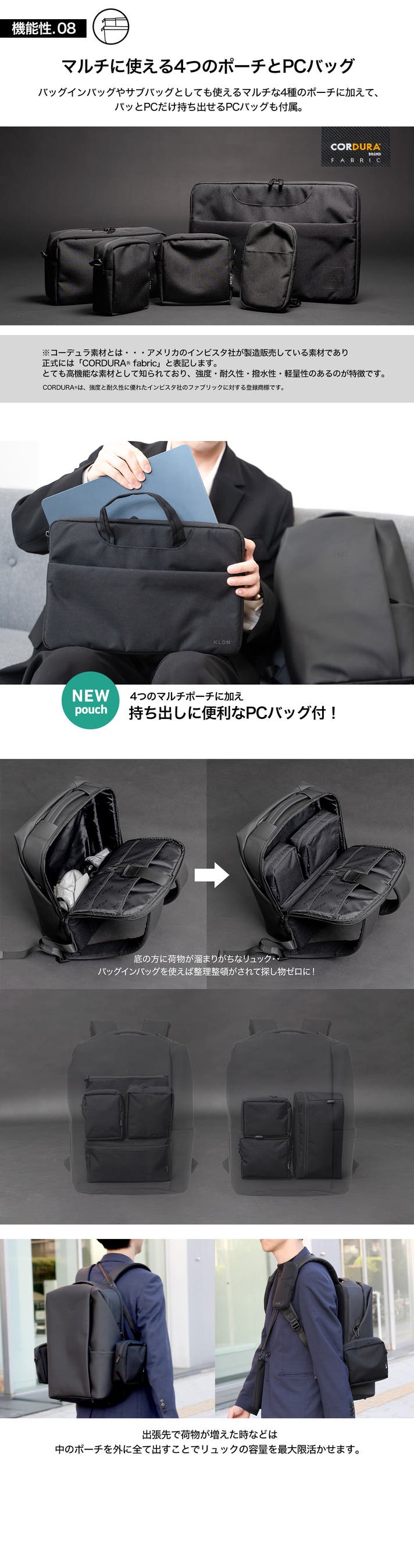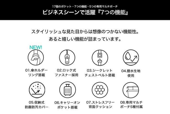 - 【累計2000万円の実績】17個の機能的なポケットと、PCバッグを含む5つの専用ポーチ付き