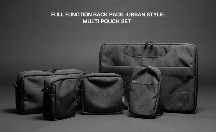 ・4つのマルチポーチとPCバッグがセットになっています