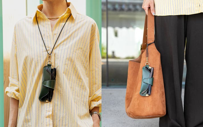 首にかけたり、バッグハンドルなどに取り付けることで使いたい時にすぐに取り出せます。