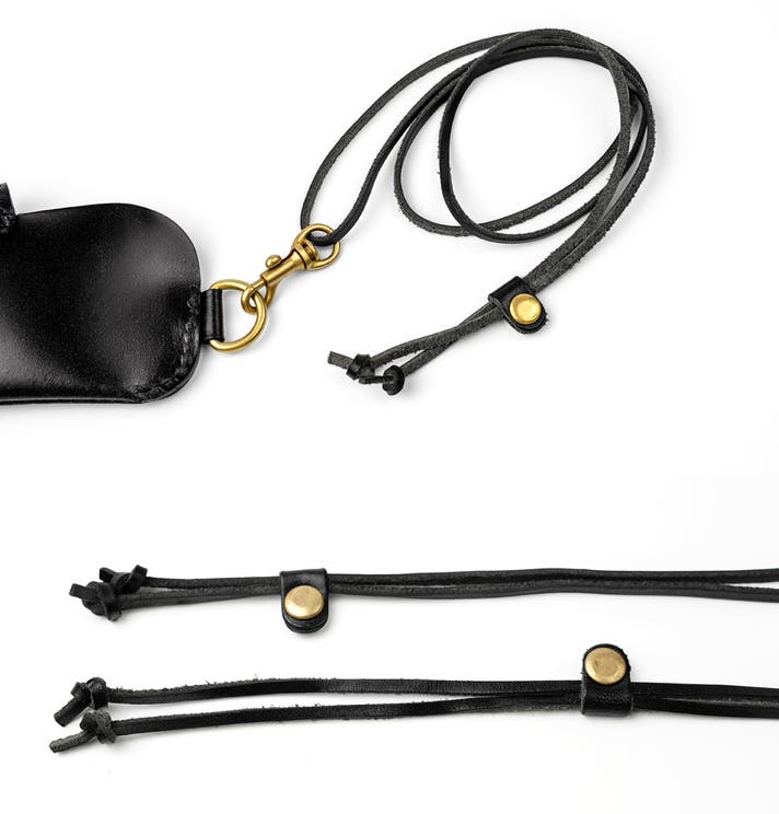 革は強度を持たせるため、栃木レザー社のベジタブルタンニンレザーの革紐を使用しています。※色はブラック